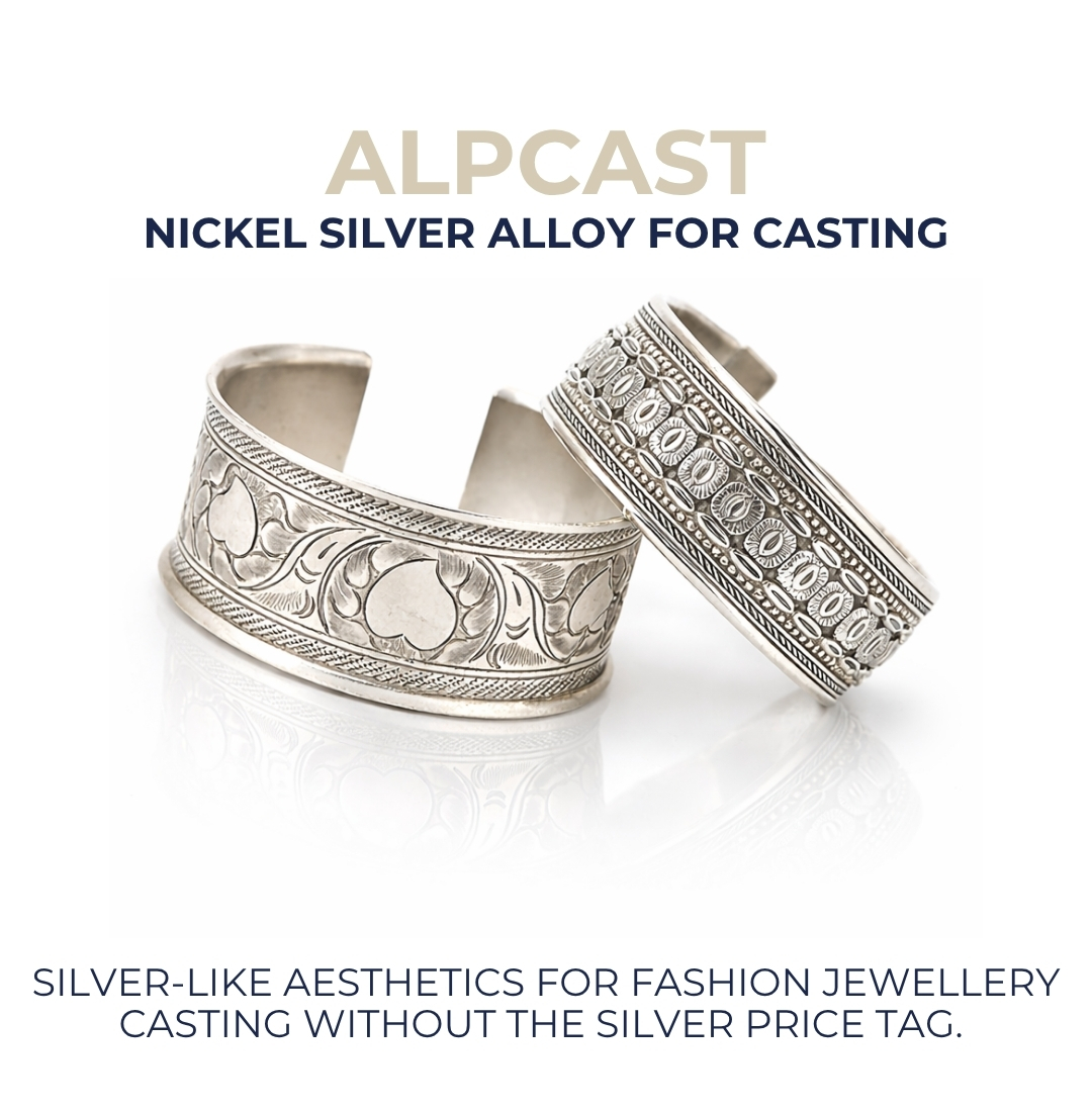 ALPCAST is a casting-grade alpaca alloy, formulated specifically for jewellery casting and fully characterised on every parameter that matters on a shopfloor.