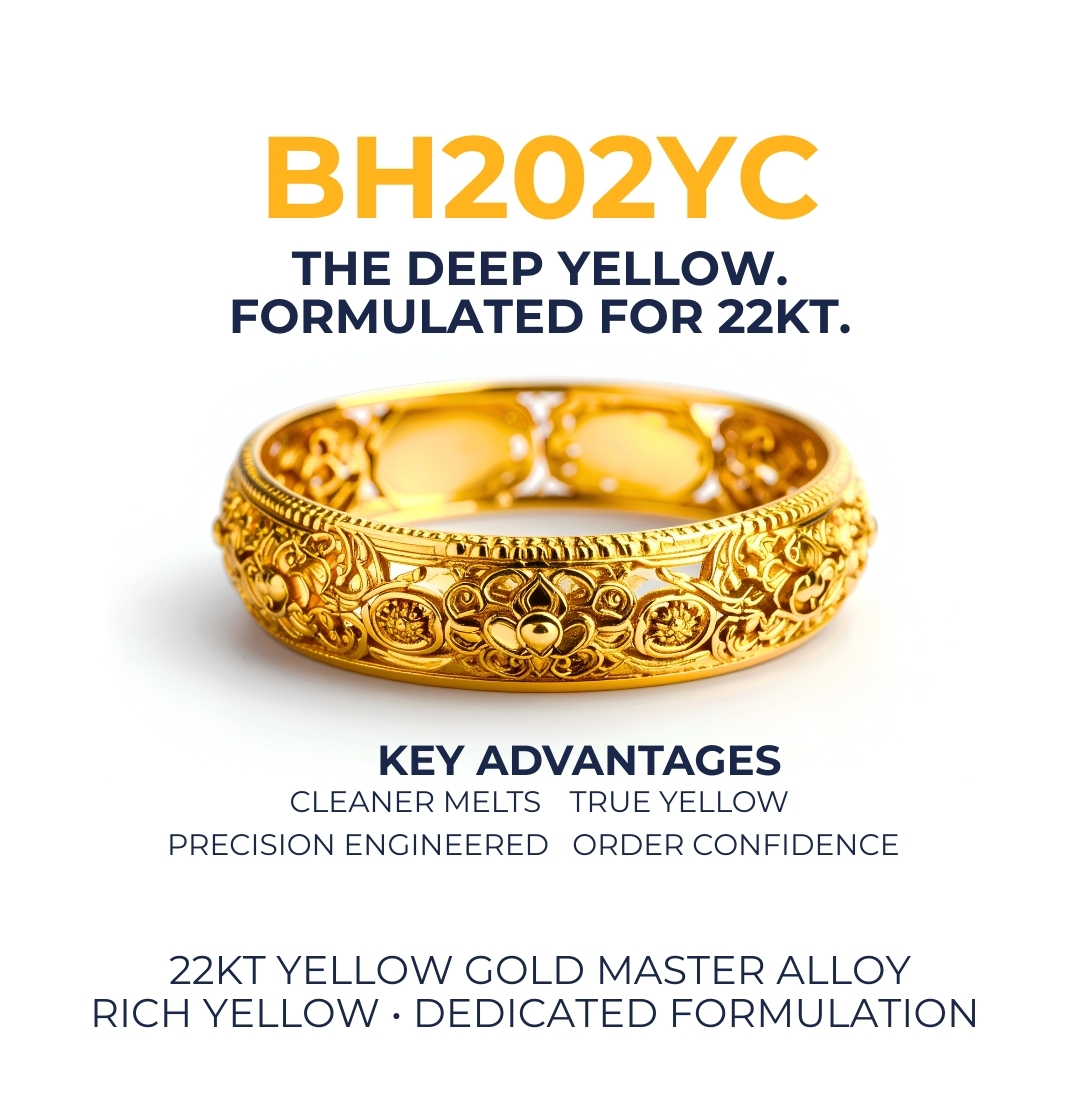 BH202YC is a 22KT-only yellow gold master alloy from Legor. Not a compromise formulation trying to cover multiple karats.